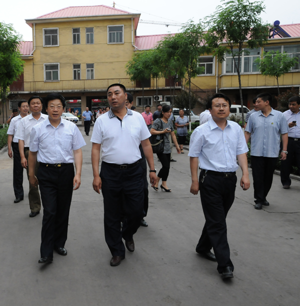 董事長(zhǎng)陪同山西省副省長(zhǎng)張平(左一)視察崔家溝新農(nóng)村